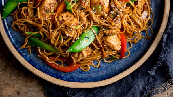 This classic stir-fry gets a flavor boost with a rich marinade featuring CÓCOES Organic Coconut Flower Aminos and black soy sauce. Tender chicken mingles with crisp vegetables and springy lo mein noodles in a light sauce, making for a satisfying and quick meal.