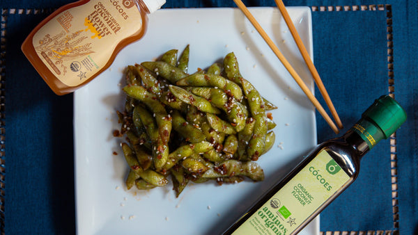 Delicious and nutritious edamame stir-fry: Sauté edamame pods in coconut aminos, creating a flavorful and healthy side dish packed with protein and a hint of sweetness, perfect for a quick and satisfying meal.