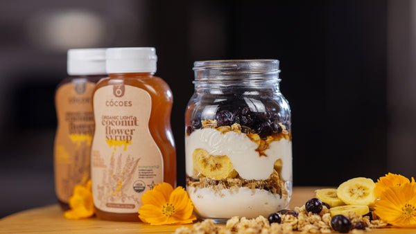 Indulge in a delightful and nutritious treat with this Healthy Granola Parfait drizzled with luscious Organic Coconut Flower Syrup. This wholesome parfait features layers of crunchy granola clusters, velvety Greek yogurt, and an assortment of fresh berries and bananas for a burst of vibrant flavors.