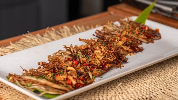 This delightful dish combines the delicate crunch of enoki mushrooms with an appetizing blend of sweetness and heat, it's a dish that's easy to make and bursting with flavor. Try it as a side or topping for a delicious twist to your meal.
