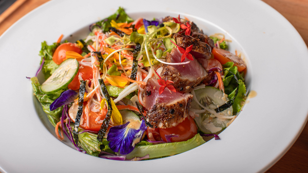 Succulent tuna, expertly seared to perfection, meets the rich, nutty flavors of our signature roasted sesame dressing, creating a harmony of taste and texture. Each bite offers a symphony of savory sensations, leaving your palate craving for more.