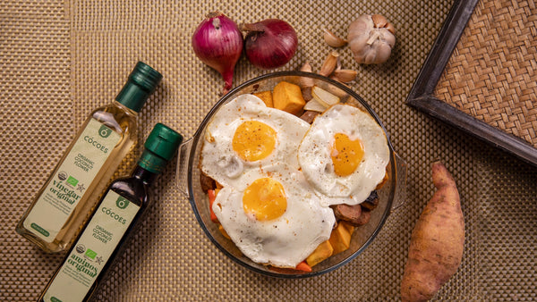Savor the perfect blend of flavors and textures with this Sweet Potato Hash with Eggs. This delightful dish features golden-brown sweet potatoes, sautéed to perfection and mixed with savory spices. Topped with perfectly cooked eggs, it's a hearty and wholesome breakfast or brunch option that combines the natural sweetness of sweet potatoes with the rich creaminess of eggs.